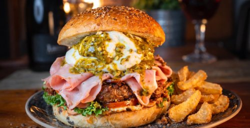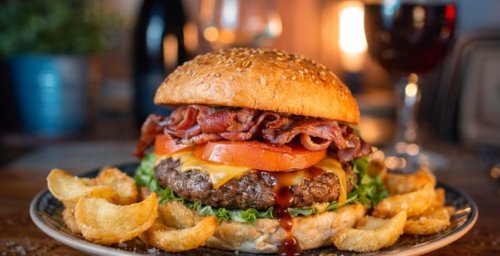 Hamburger di Chianina 200g , Carbonara , Pecorino gratuggiato in uscita , Pepe , Guanciale , Pane Hamburger fatto a mano